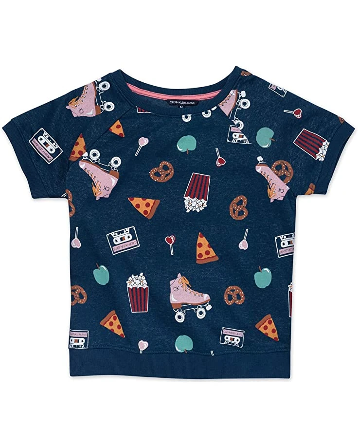 - Features: this girls French terry short sleeve crew neck sweatshirt features cross back, All over fun print on body