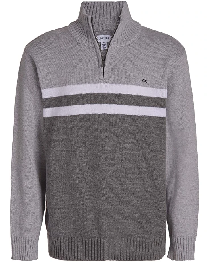 Calvin Klein Boys’ Half Zip Pullover Sweater, Ribbed Neckline & Logo Detailing | Sweaters