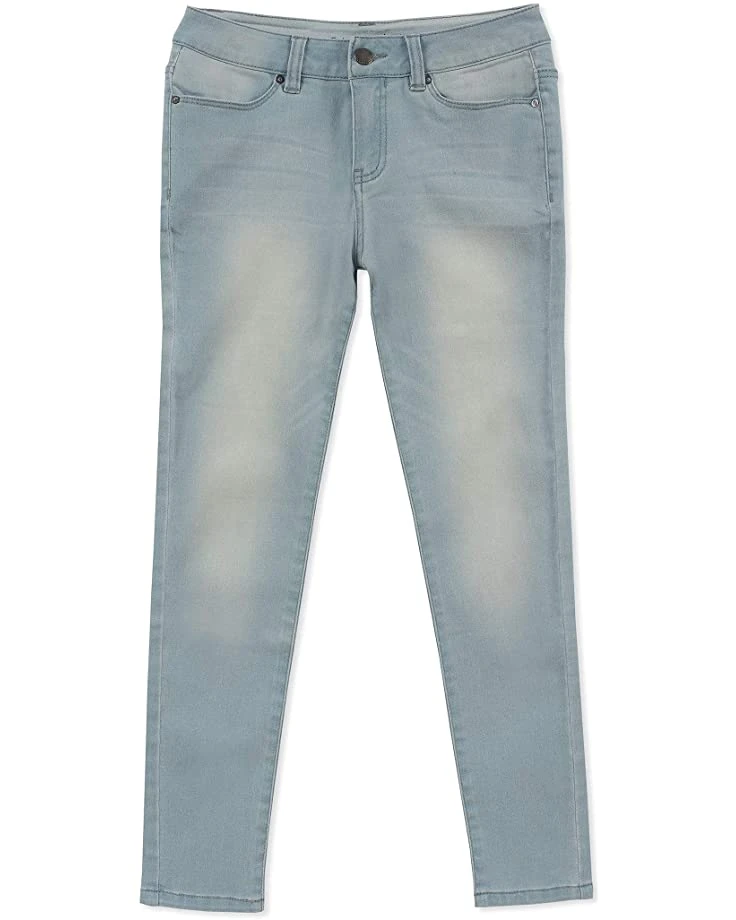 - Features: This Girls’ 5 pocket skinny denim jean features super soft stretch denim fabric, front zipper closure, Omega pocket logo on back pockets and various washes to choose from