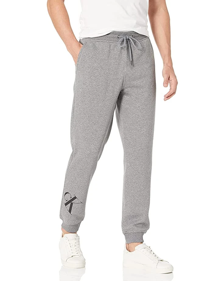 - Designed with a solid body and a tilt monogram logo, these updated Calvin Klein sweatpants feature a plush cotton knit fleece blend for premium, all-day comfort. Finished with a drawstring waistband and pull-on styling, angled front slip pockets, straight legs and banded ankles. An on-trend look, perfect to complement Calvin Klein wovens, polo shirts and more.