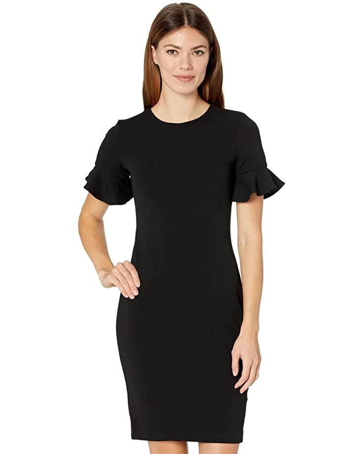 - Embrace a stunning look wearing the Calvin Klein® Short Ruffle Sleeve Dress on your date night.