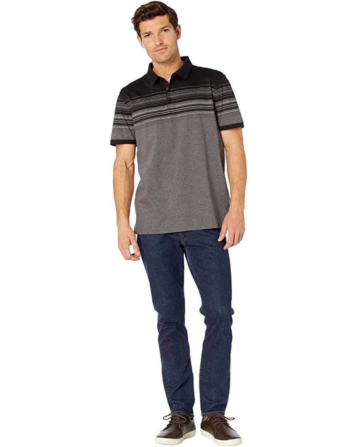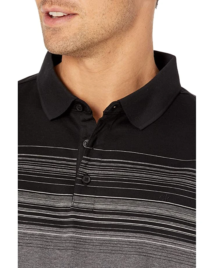 - Get casually dressed up for that weekend date wearing the Calvin Klein® Short Sleeve Liquid Fine Chest. This cotton dress shirt is constructed with a collared neck, three-button placket, short sleeves, side vented hems and features a small stripe pattern at the top to have you noticed.