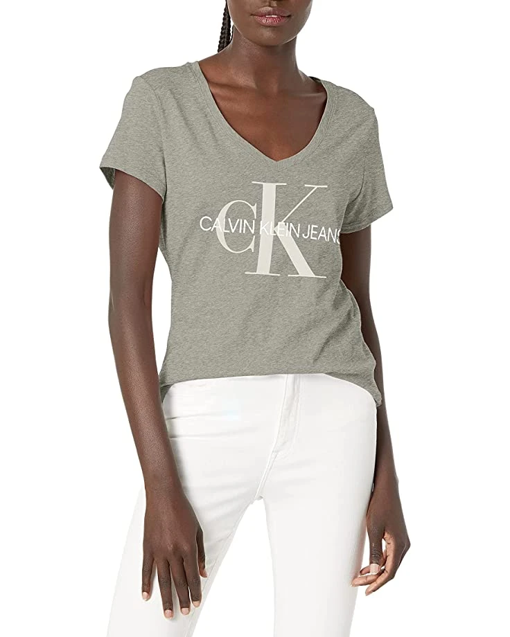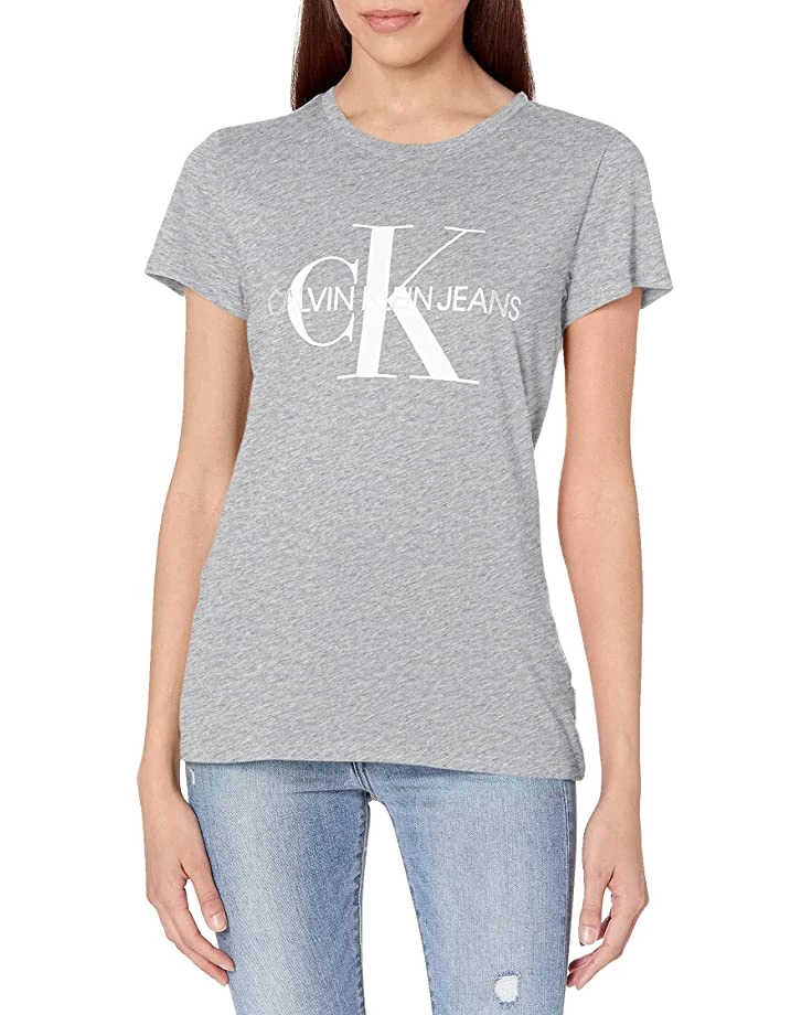 Calvin Klein Women’s Foil Monogram Logo Short Sleeve Iconic Tee | Shirts & Tops