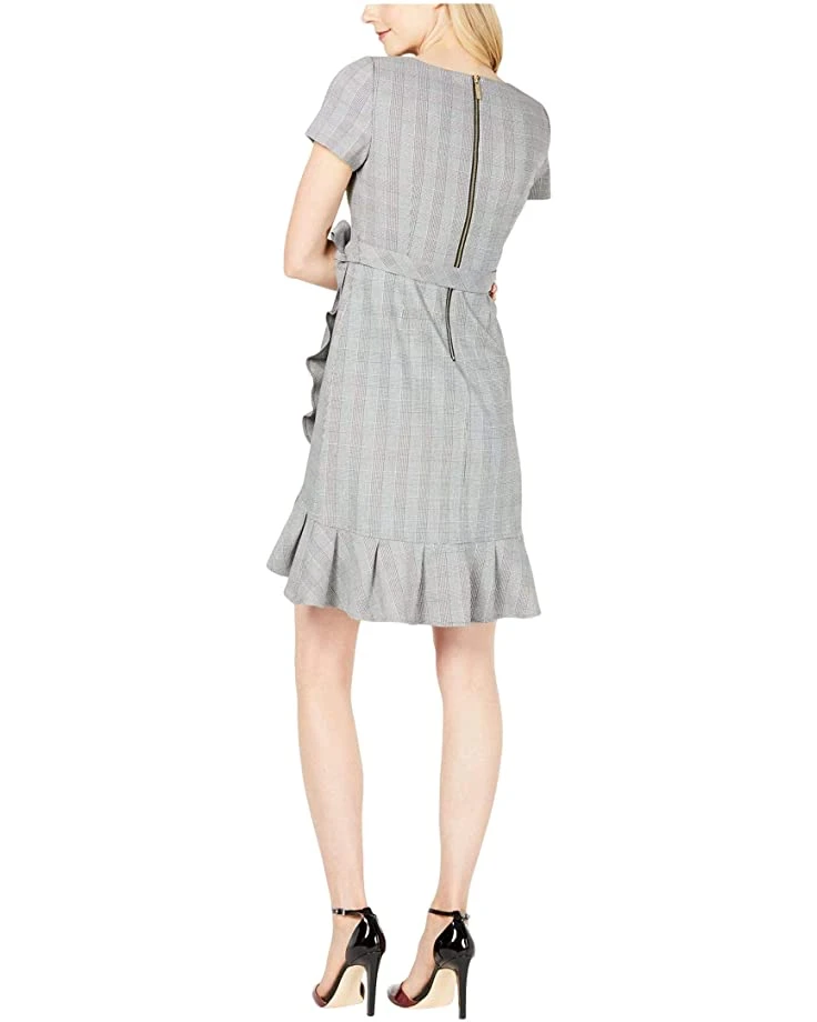Calvin Klein Women’s Petite Short Sleeve Dress with Ruffle Hem and Self Belt | Dresses