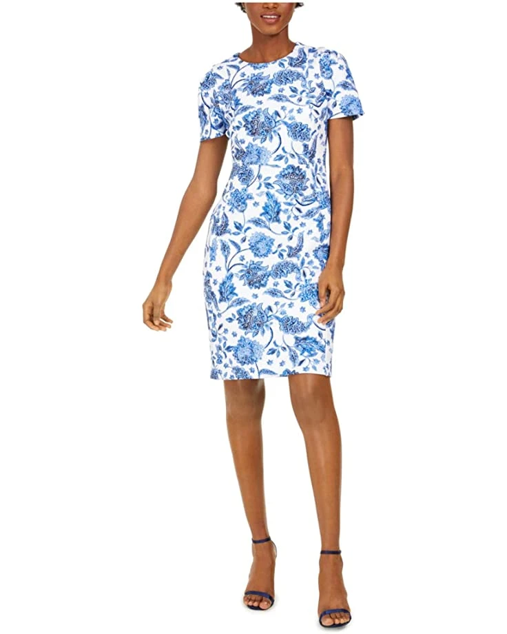 Calvin Klein Women’s Petite Short Sleeved Sheath with Princess Seams Dress | Dresses