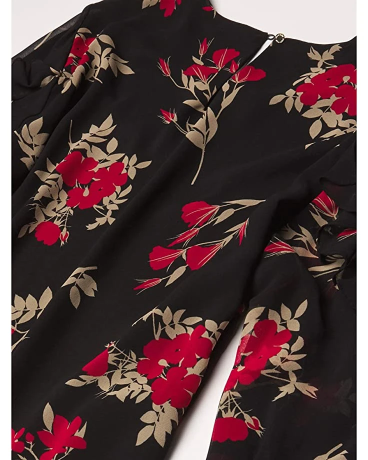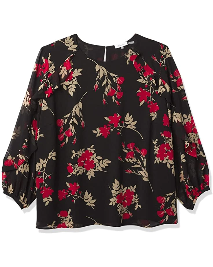 Calvin Klein Women’s Printed Long Sleeve Top with Ruffle Detail | Shirts & Tops