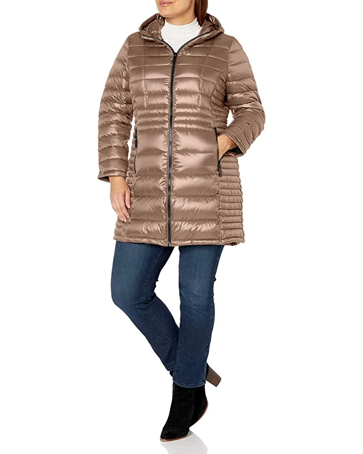 Calvin Klein Womens Plus Sized Walker Packable with Hood | Coats & Outerwear