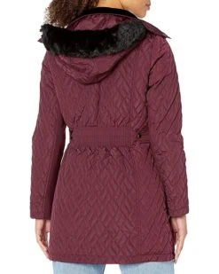 Calvin Klein Women’s Walker Length Faux Fur Trimmed, Diamond Quilting Pattern | Coats & Outerwear