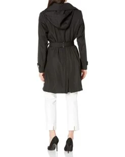 Calvin Klein Women’s Single Breasted Belted Rain Jacket with Removable Hood | Coats & Outerwear